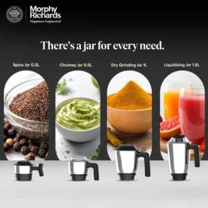 - উচ্চ-গ্রেড স্টেইনলেস-স্টিল জার – লিকুইডাইজিং জার ২.২ লিটার এবং চাটনি জার ০.৪ লিটার